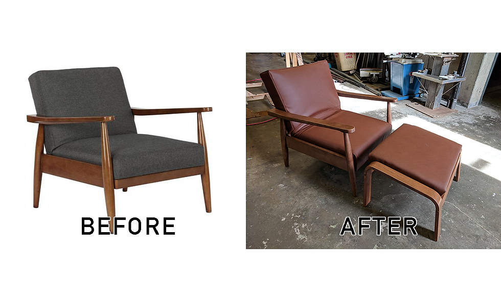 The task was to build an ottoman according to specific dimensions. Materials used include wood, pleather, cotton, and felt.